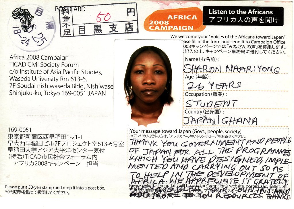 I just wanted to say "Thank you for what you are doing for Africa,it is highly appreciated.I have been living in Japan for years now and i must say that this is the first time and seeing some positive elements regarding Africa.